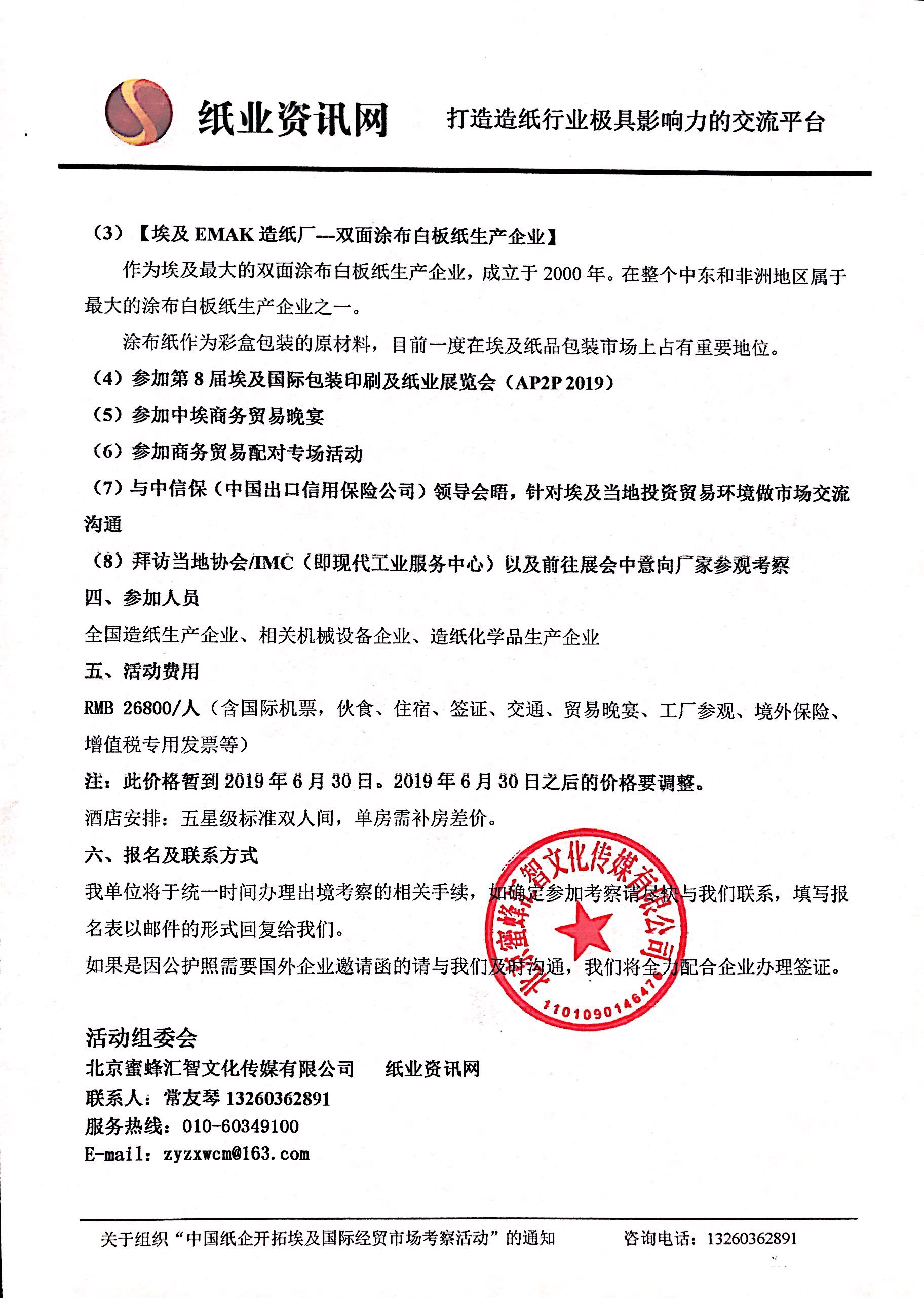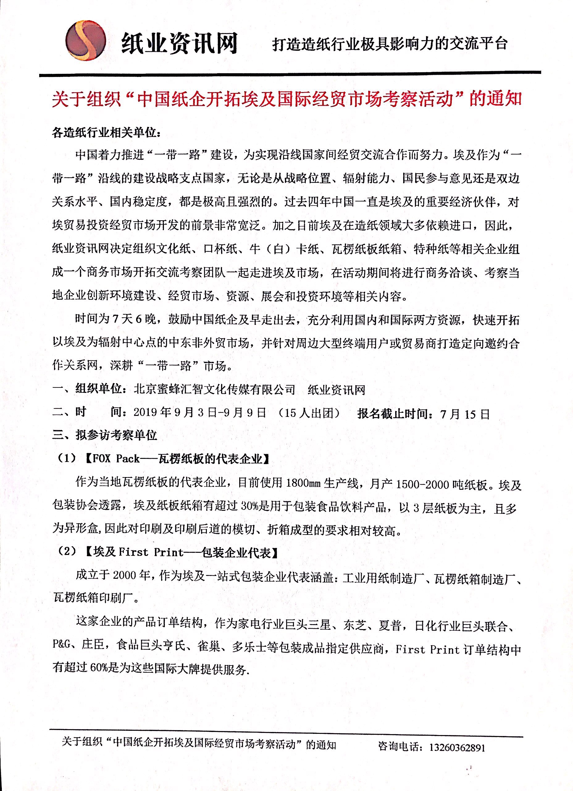 关于组织“中国纸企开拓埃及国际经贸市场考察活动”的通知